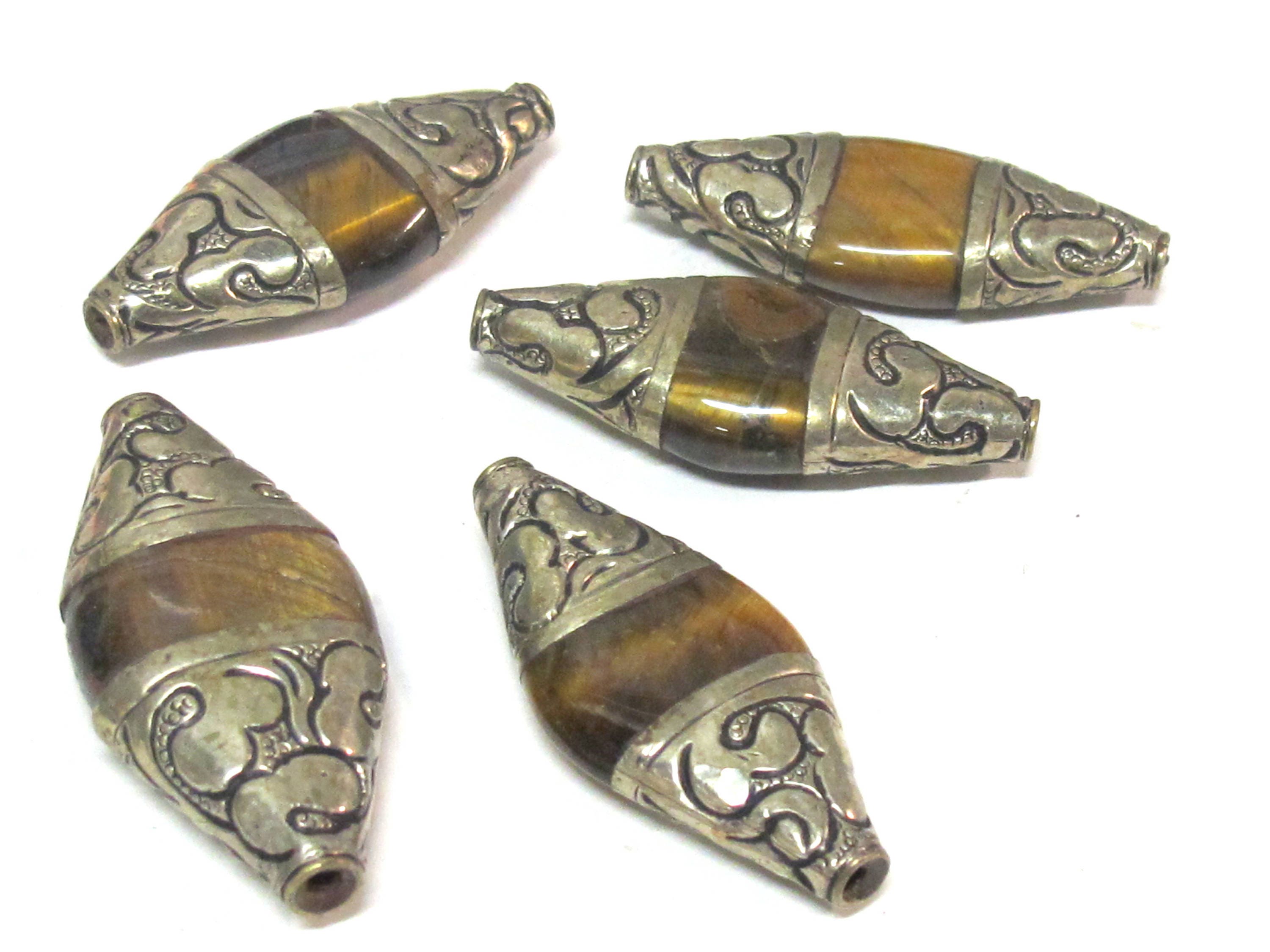 1 BEAD - Tibetan silver color capped Tigers eye bicone shape gemstone bead - BD821C 1 BEAD - Tibetan silver color capped Tigers eye bicone shape gemstone bead - BD821C