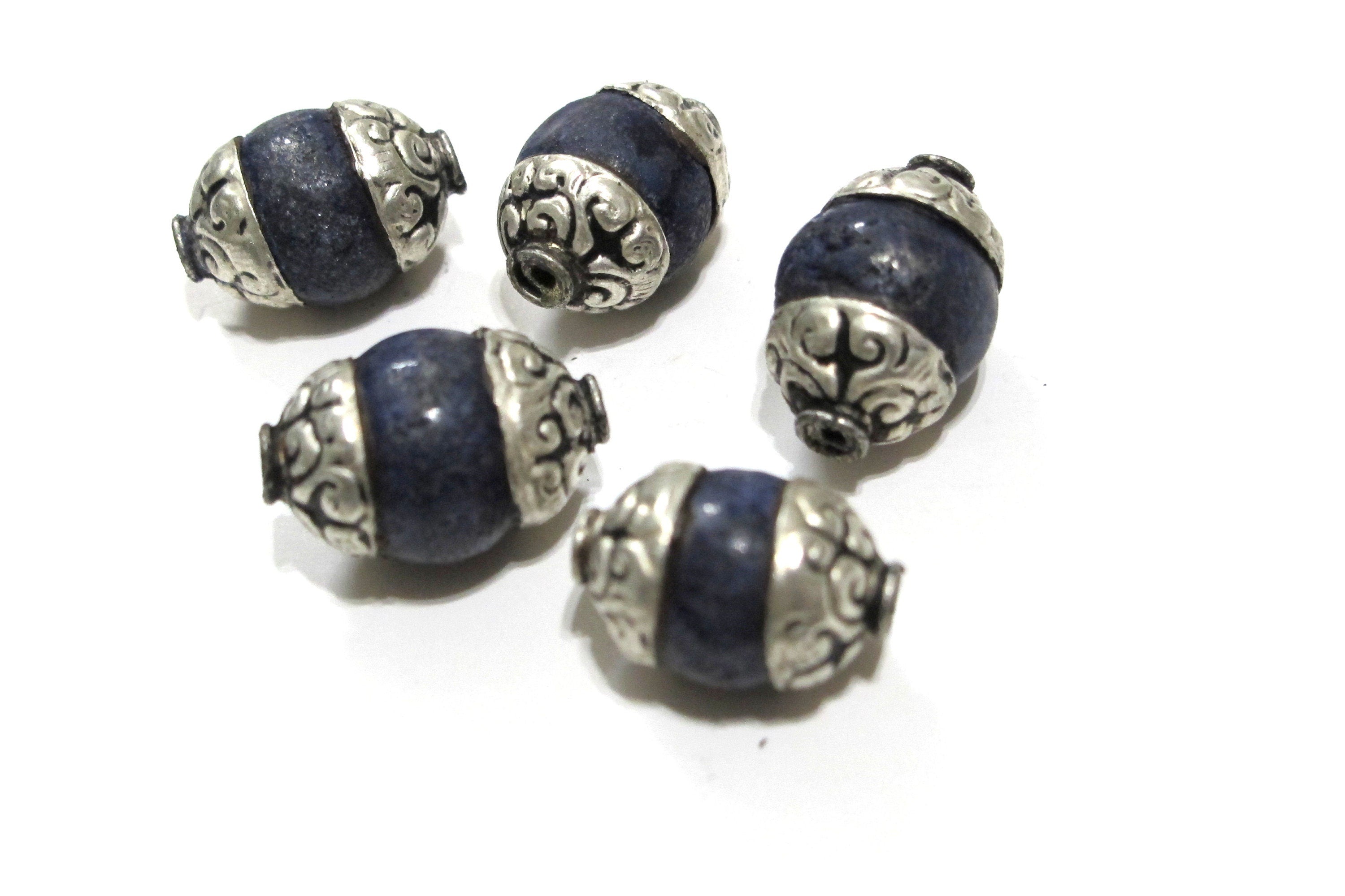 $4.50 USD1 bead Tibetan Capped Lapis Lazuli Gemstone Bead Nepal bead Jewelry Supply - focal capped gemstone bead BD362