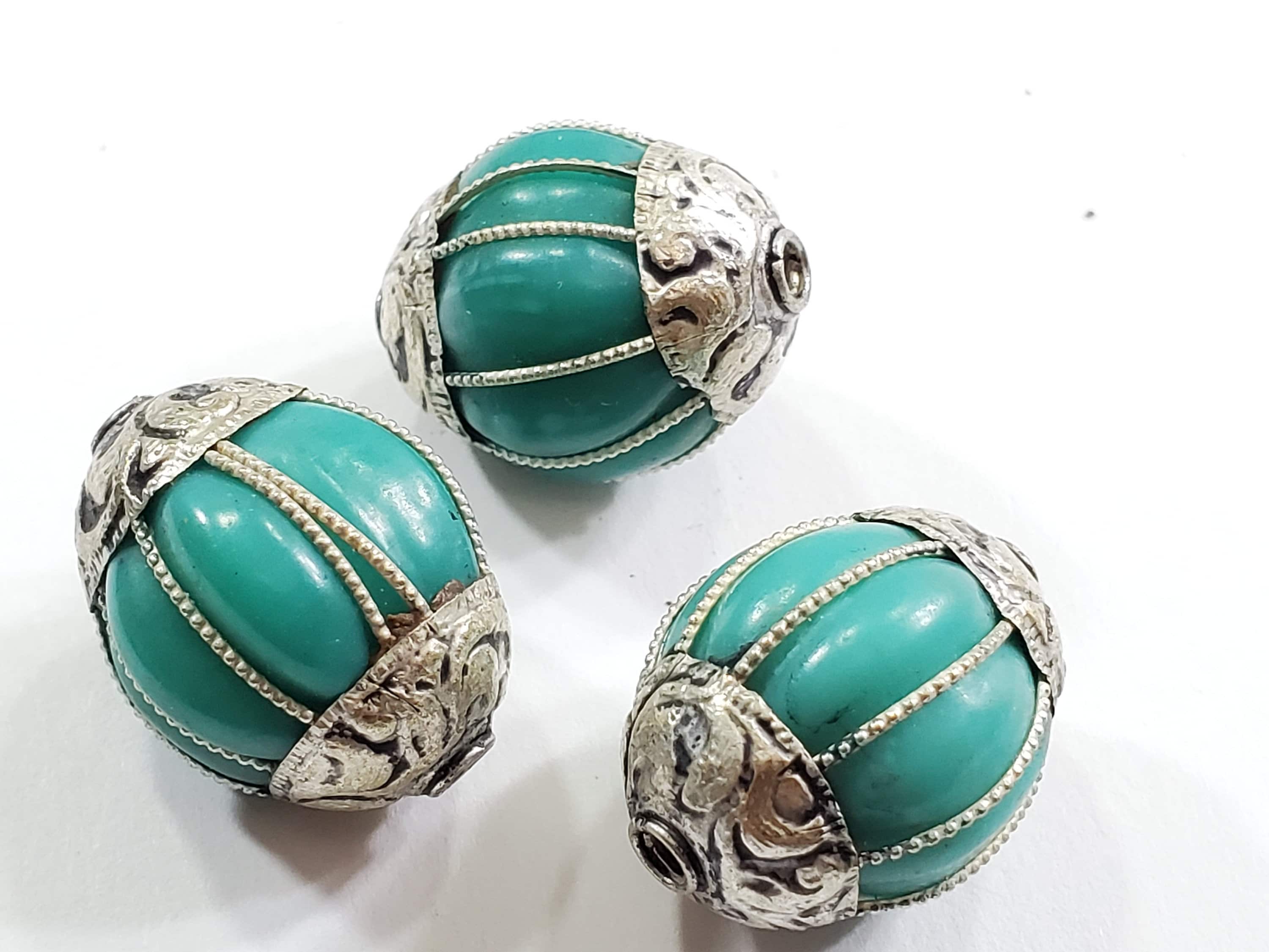 $4.99 USD1 Bead - Tibetan silver capped turquoise gemstone beads from Nepal Tibetan beads Nepal beads - BD403