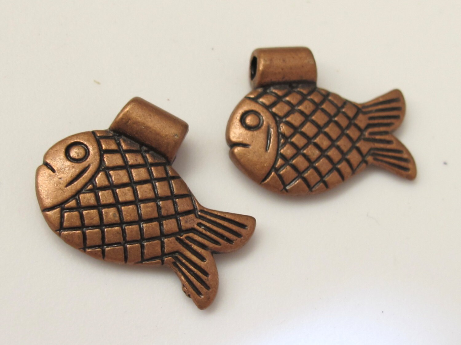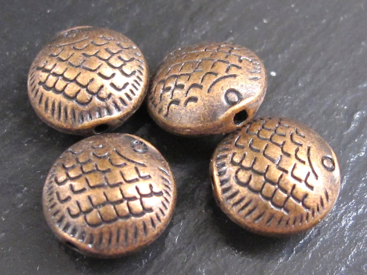 4 beads - Copper tone finish Fish Design Beads – Rustic Tibetan-Style Metal Beads for Jewelry Making- fishing theme beads - BD200 4 beads - Copper tone finish Fish Design Beads – Rustic Tibetan-Style Metal Beads for Jewelry Making- fishing theme beads - BD200