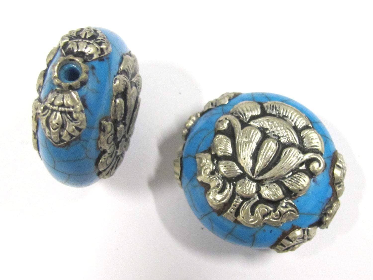 1 Bead - Tibetan silver capped turquoise gemstone beads from Nepal Tibetan beads Nepal beads - BD403 1 Bead - Tibetan silver capped turquoise gemstone beads from Nepal Tibetan beads Nepal beads - BD403