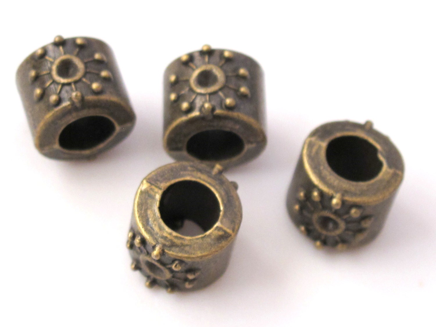 4 beads set - Brass color tubular metal sunrays design beads - BD354 4 beads set - Brass color tubular metal sunrays design beads - BD354