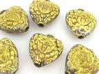 This listing is for 1 bead. Tibetan repousse heart shape antiqued golden finish brass bead.